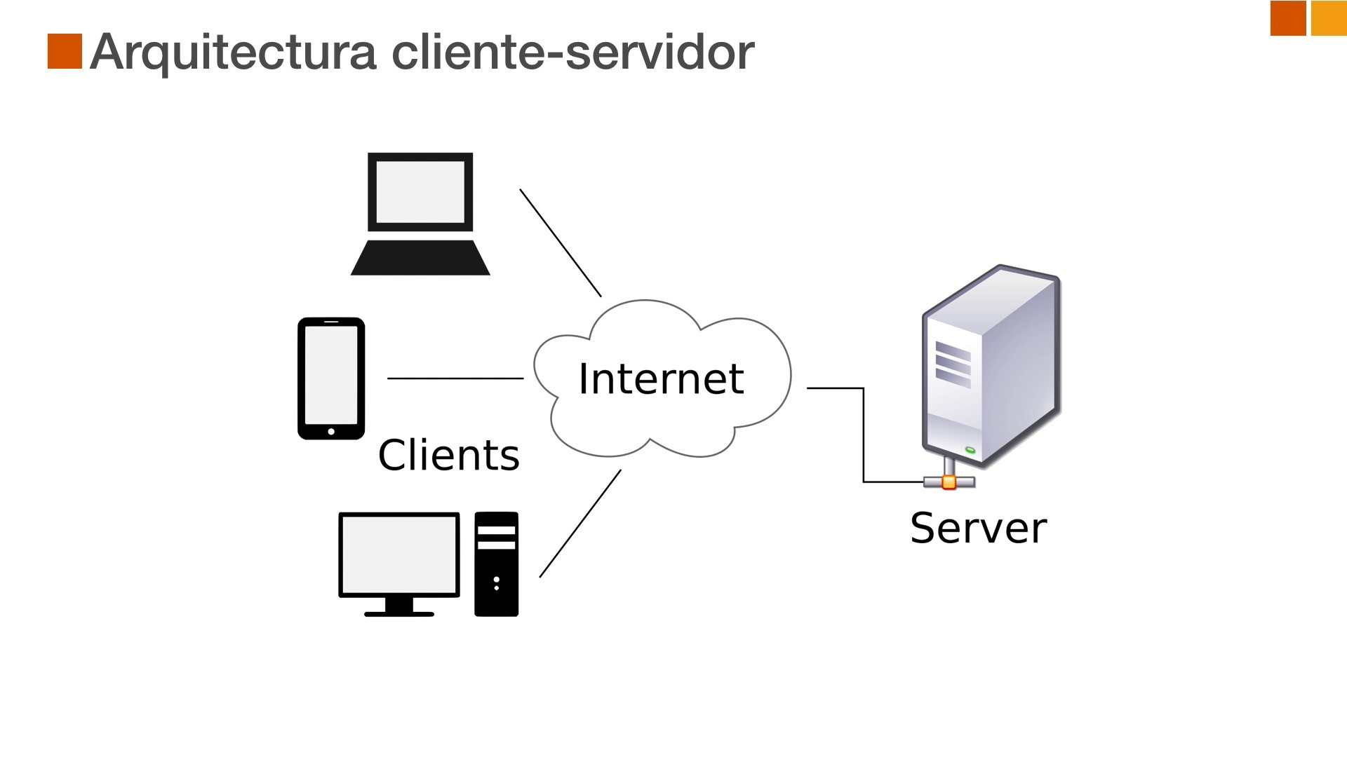 Este tipo de red cuenta con una computadora principal a la que denominamos. SERVIDOR especialmente configurado para centralizar datos, brindar seguridad y ofrecer servicios a los CLIENTES (usuarios).