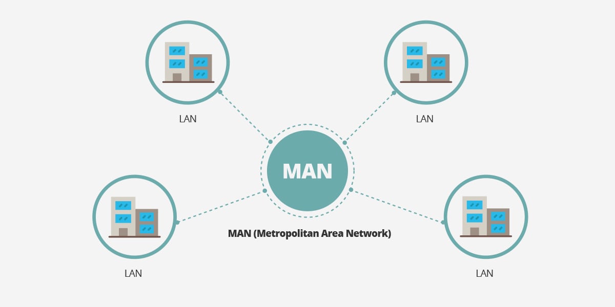 Una MAN es un sistema de interconexión de equipos informáticos distribuidos en una zona que abarque diversos edificios, o pueden conectarse equipos dentro de ciudades vecinas. Por ejemplo, podría utilizarse para la conexión de equipos por medio de la línea telefónica de dos sucursales de una empresa para compartir datos. Este tipo de redes se utiliza normalmente para interconectar redes de área local.